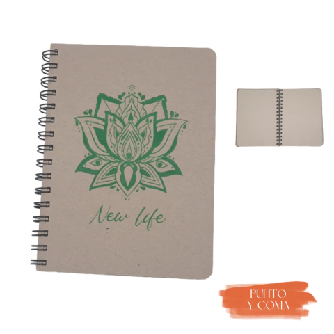 Cuaderno liso A5 de 80 hojas con espiral y tapas de carton. Hojas naturales de 75 gr. Varios modelos de tapa