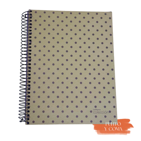 Cuaderno tapa dura con lunares metalidos, espiral y 84 hojas rayadas de 100 g/m2. Medida 16 x 21 cm